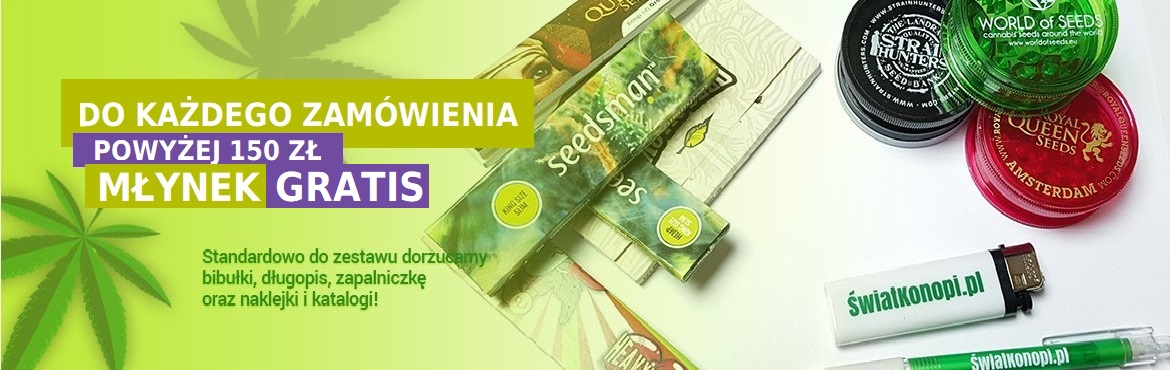 Zgodnie z obowiązującym w Polsce prawem sprzedaż, posiadanie oraz handel nasionami marihuany jest całkowicie LEGALNY. Dostępne w naszym sklepie kolekcjonerskie nasiona konopi nie posiadają żadnych substancji narkotycznych. Każdy może posiadać, kupować i sprzedawać nasiona marihuany (nasiona konopi indyjskiej) bez obawy przed złamaniem prawa. Kolekcjonerskie nasiona konopi traktować można jako produkt spożywczy, kolekcjonerski lub kadzidełko. Sklep Świat-Konopi.pl w żaden sposób nie zachęca do ich kiełkowania i uprawiania nasion, a tym samym łamania przepisów prawnych.